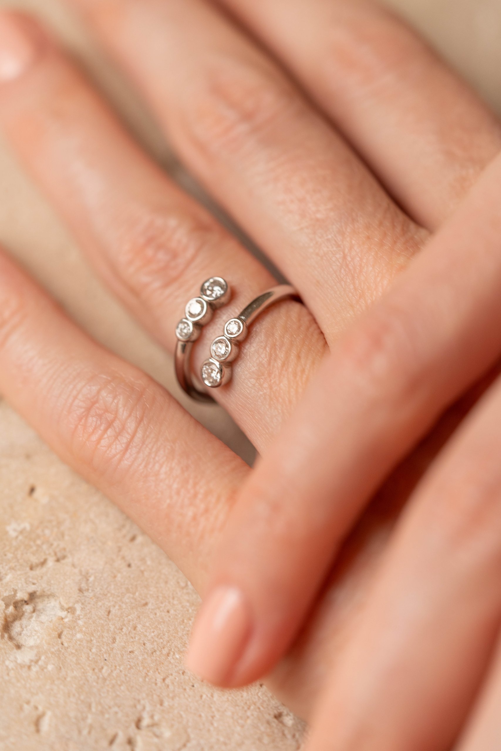 – La bague en or 18 carats se pare de 6 somptueuses pierres enserrées dans un serti clos qui la rendent sublime portée seule.
