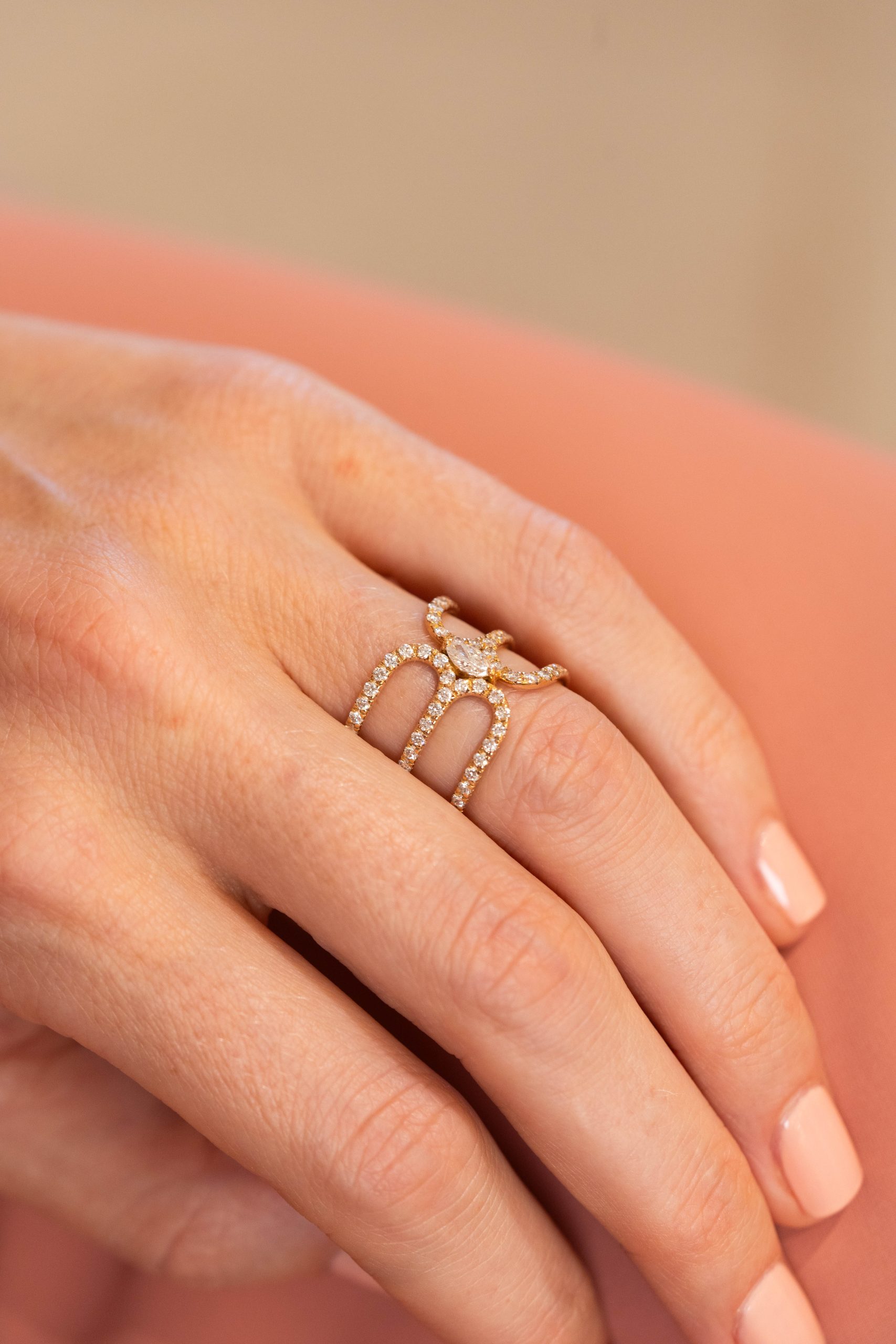 – En or 18 carats, la bague est sertie à la main d’un pavage de 58 diamants et d’une fine marquise qui orne le centre de la pièce pour lui apporter un magnifique éclat.
