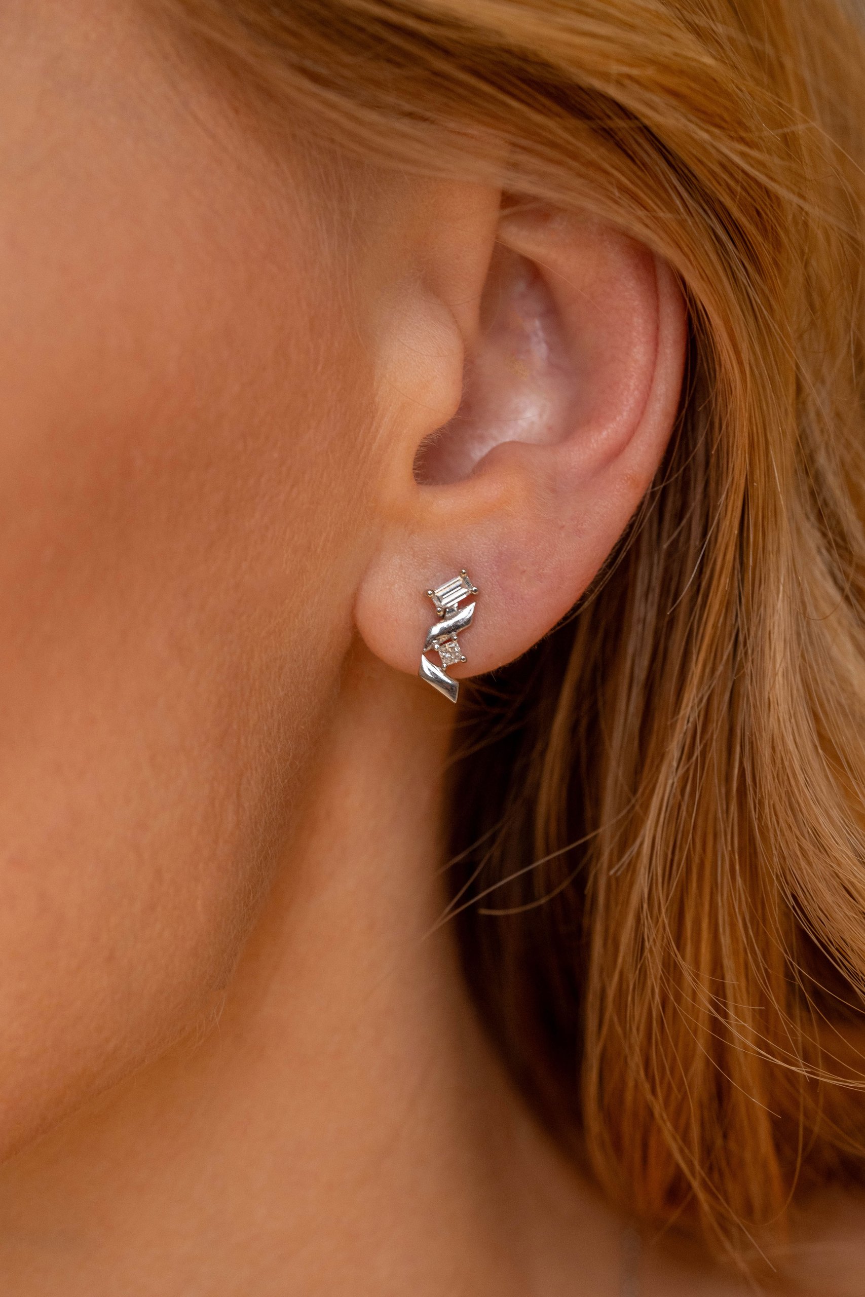 – Ces boucles d’oreilles en or 18 carats sont ornées de 2 pierres baguettes de 4×2 mm et de 2 diamants princesses de 2 mm.