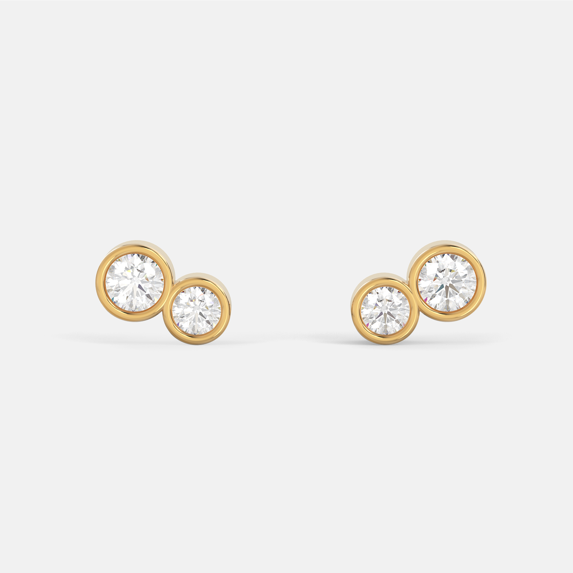 – Des boucles d’oreilles en or 18 carats ornées d’une pierre de 3,0 mm et d’une pierre de 2,5 mm montées en serti clos et sécurisées par un fermoir de type “papillon”.