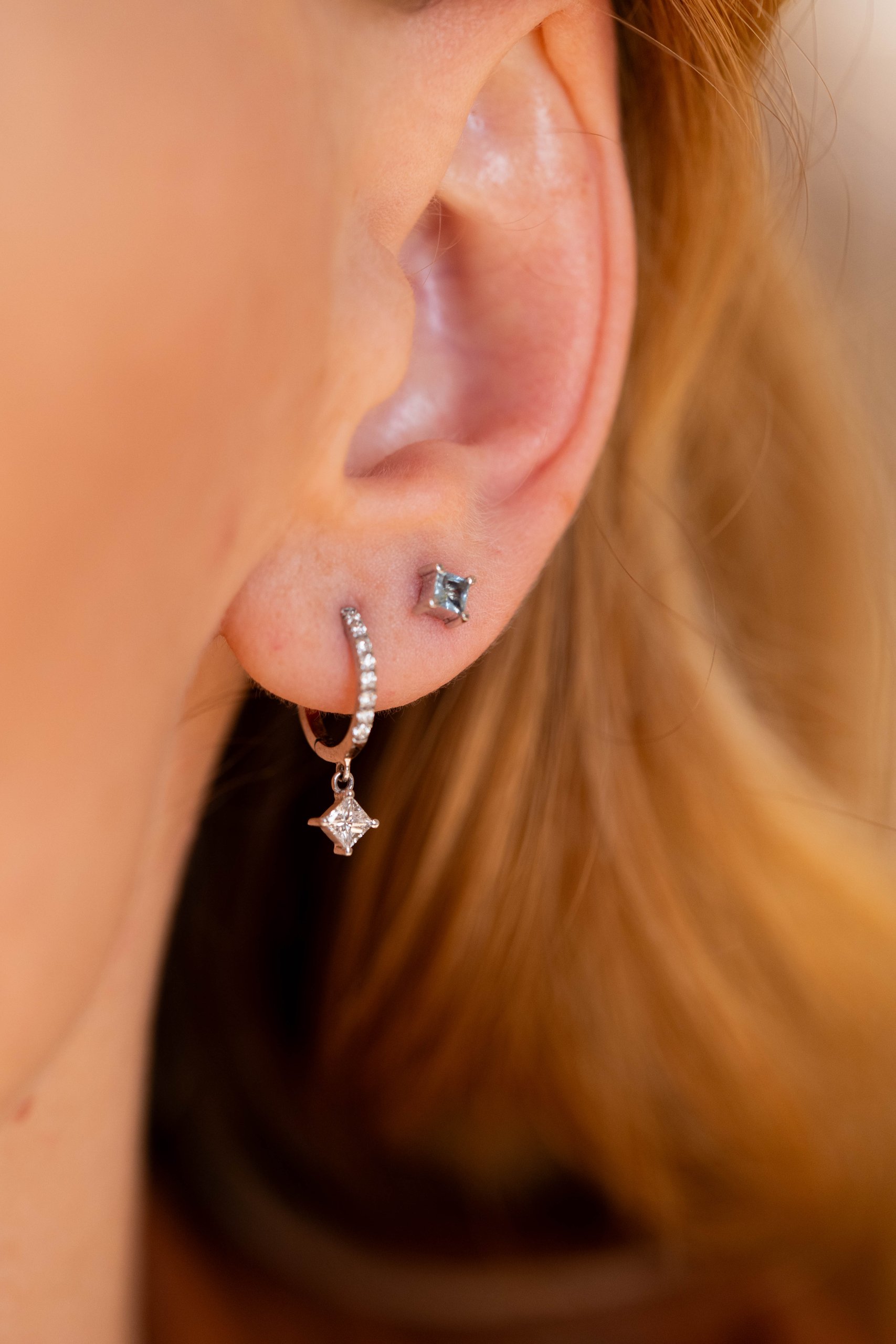 – Deux puces d’oreilles en or 18 carats, serties de deux pierres rondes de 3 mm.