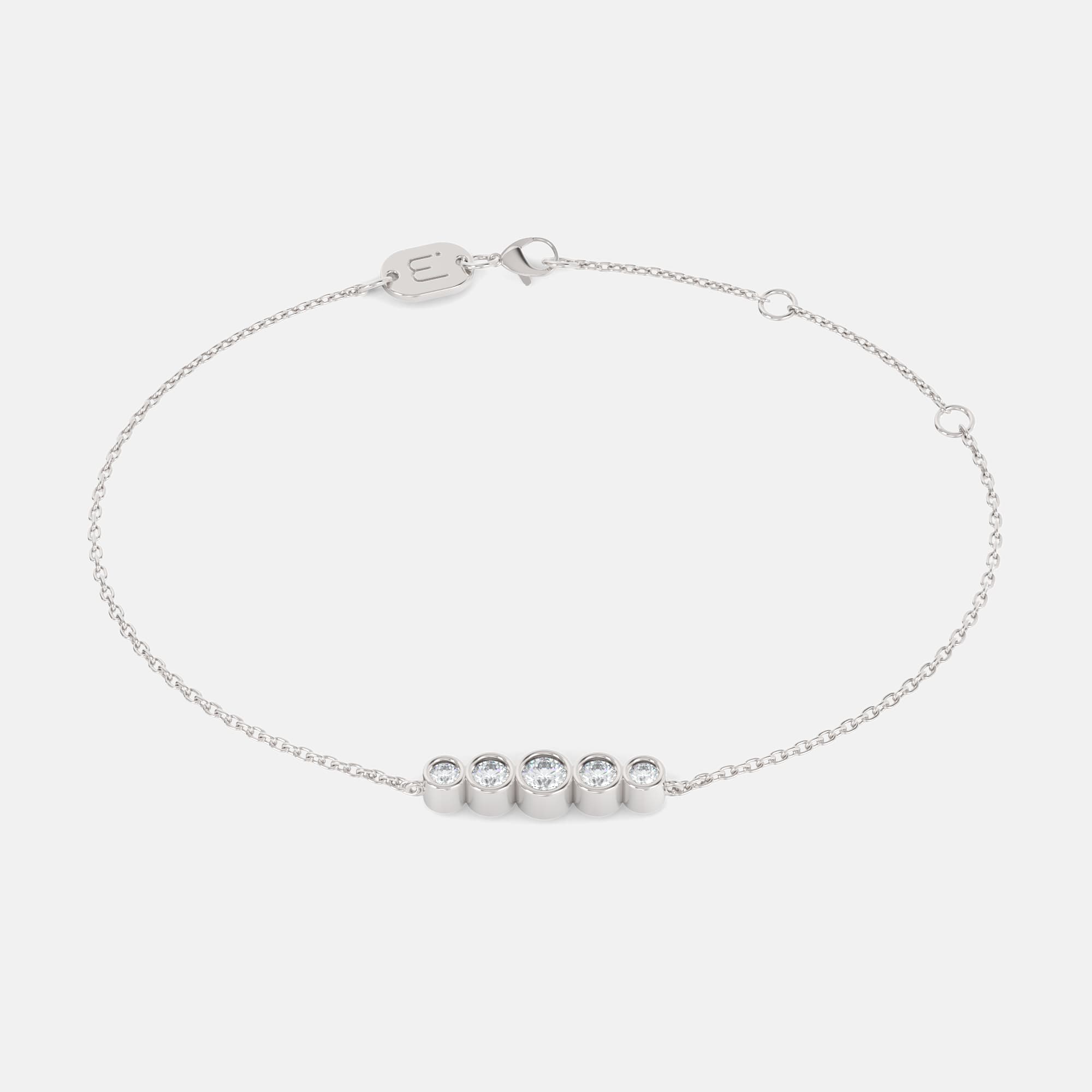 ‘- Un bijou composé de 5 pierres montées en serti clos sur une fine chaine de type forçat en or 18 carats.
