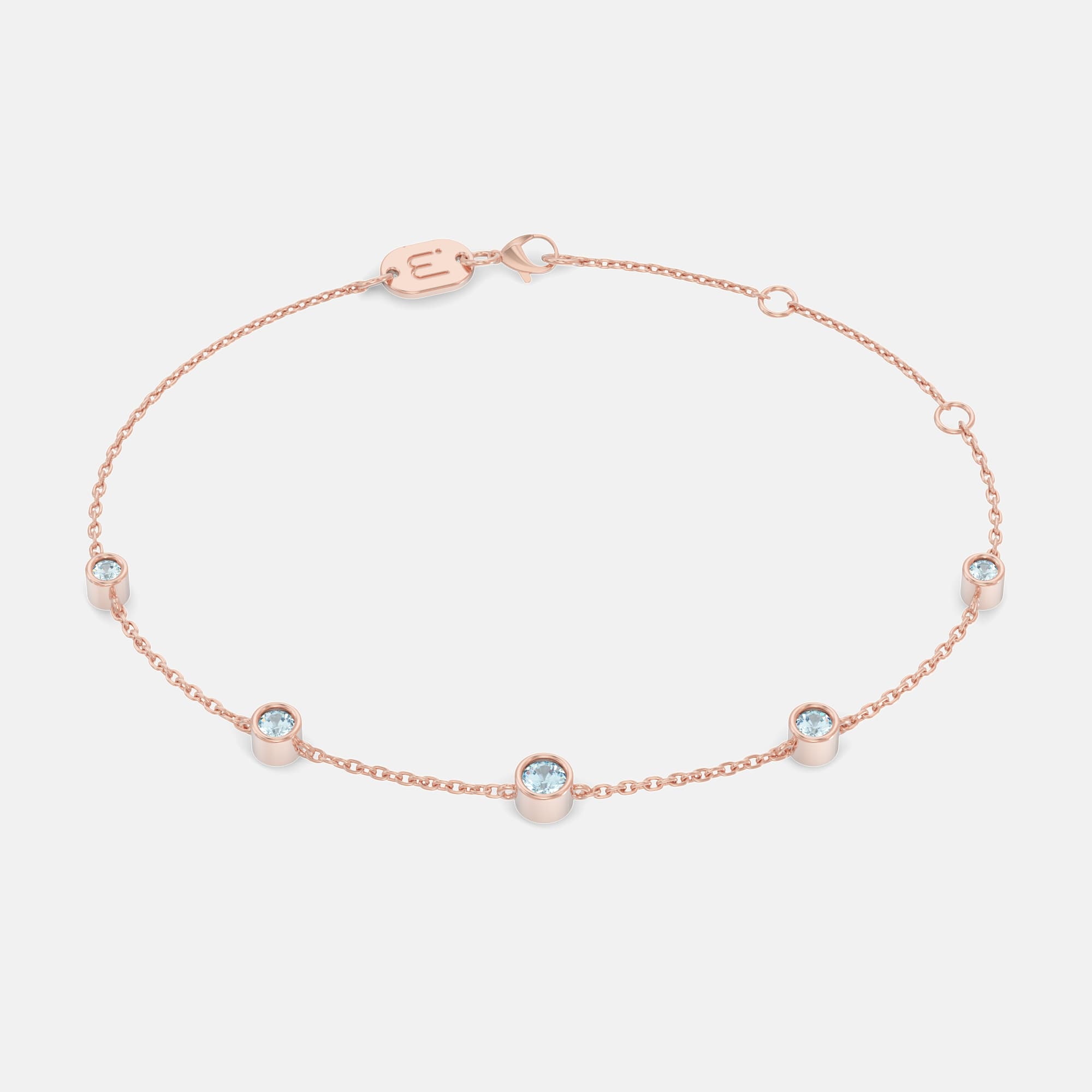 – Un bijou parsemé de 5 pierres montées en serti clos sur une fine chaine de type forçat en or 18 carats.