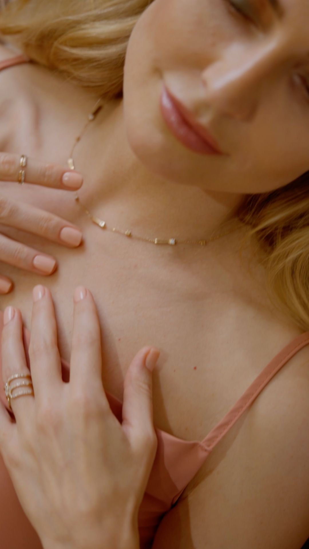 – En or 18 carats, ce collier est serti de 4 diamants et de 5 pierres de 3mm.