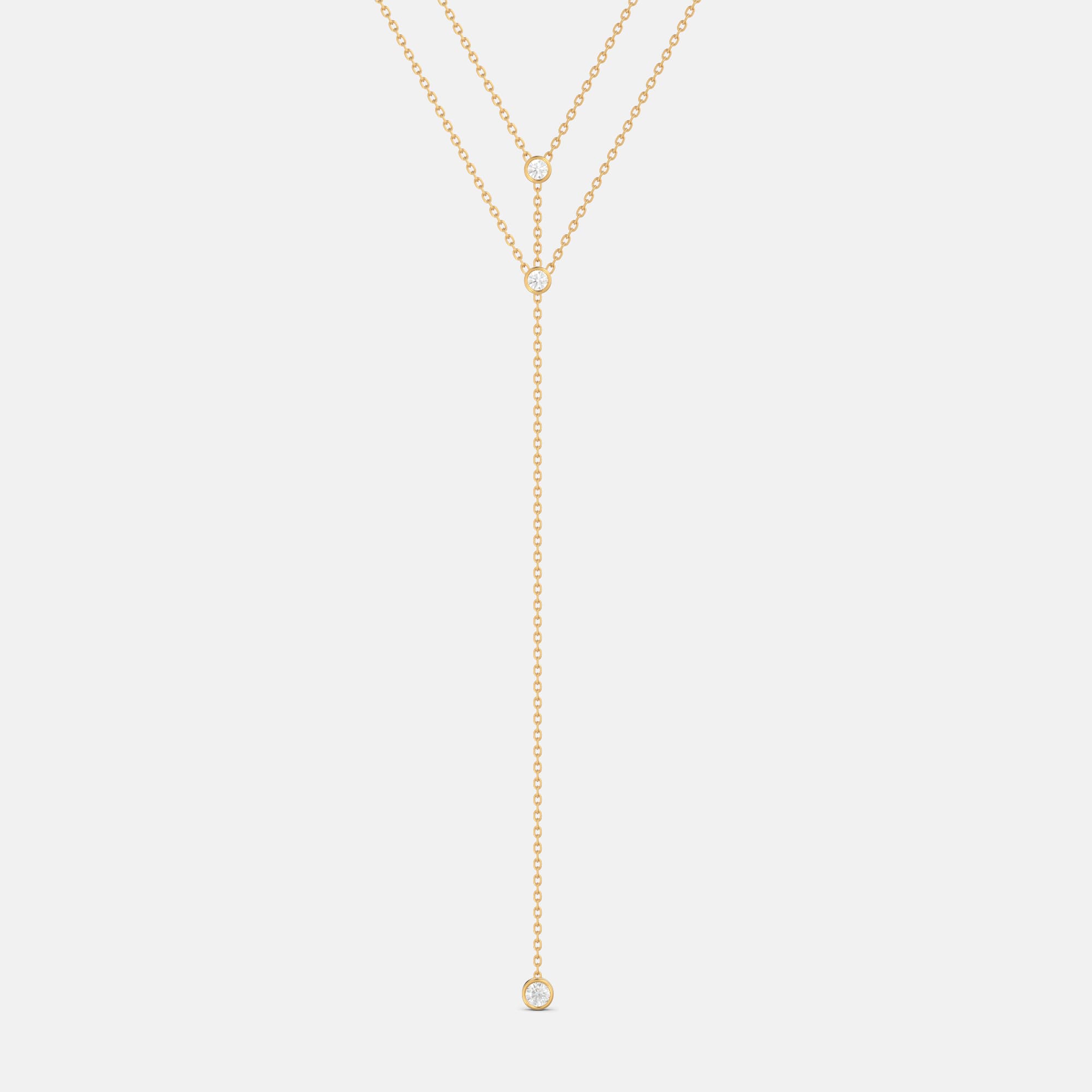 – Une création originale à la croisée du chic et de l’audacité composée de deux pierres de 2,5mm et d’une pierre de 3mm montées en serti clos sur une chaine en or 18 carats de type “forçat”.