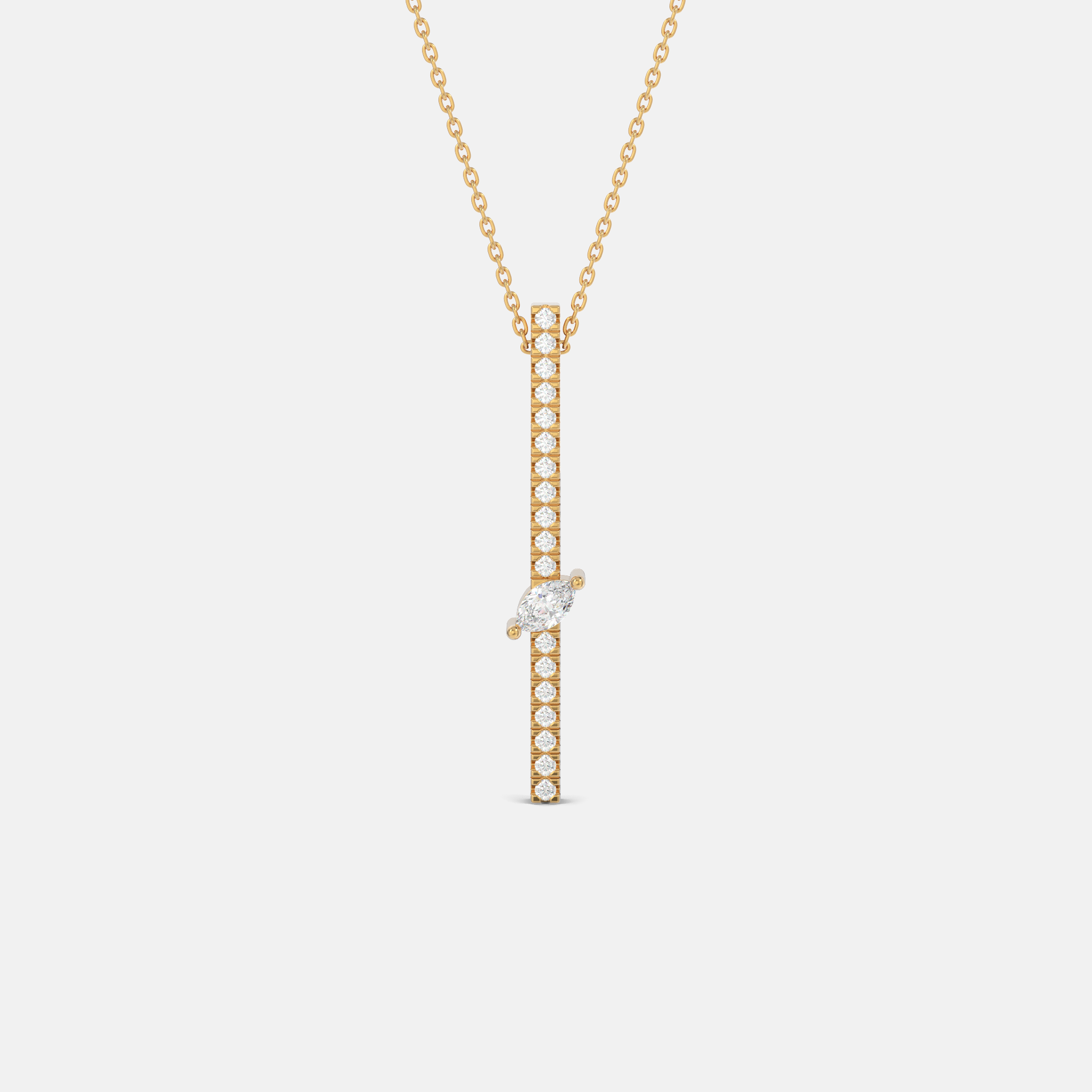 – Un pendentif en or 18 carats serti d’une pierre marquise de 5×3 mm et d’un pavage de 18 diamants ronds.